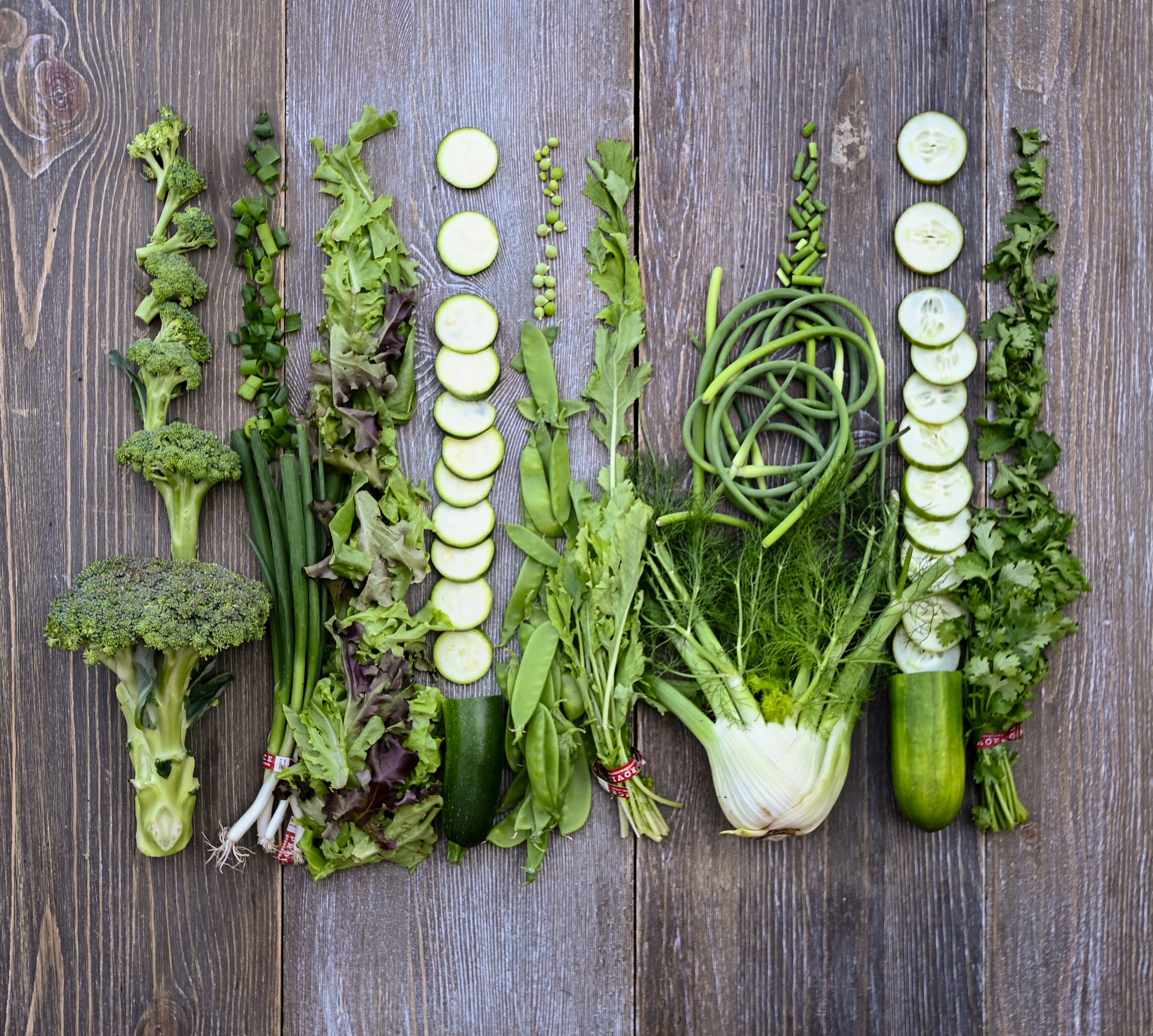All kinds of certified organic veggies & fruits (strawberries & melons)… grass-fed beef & lamb & forest-raised pork.