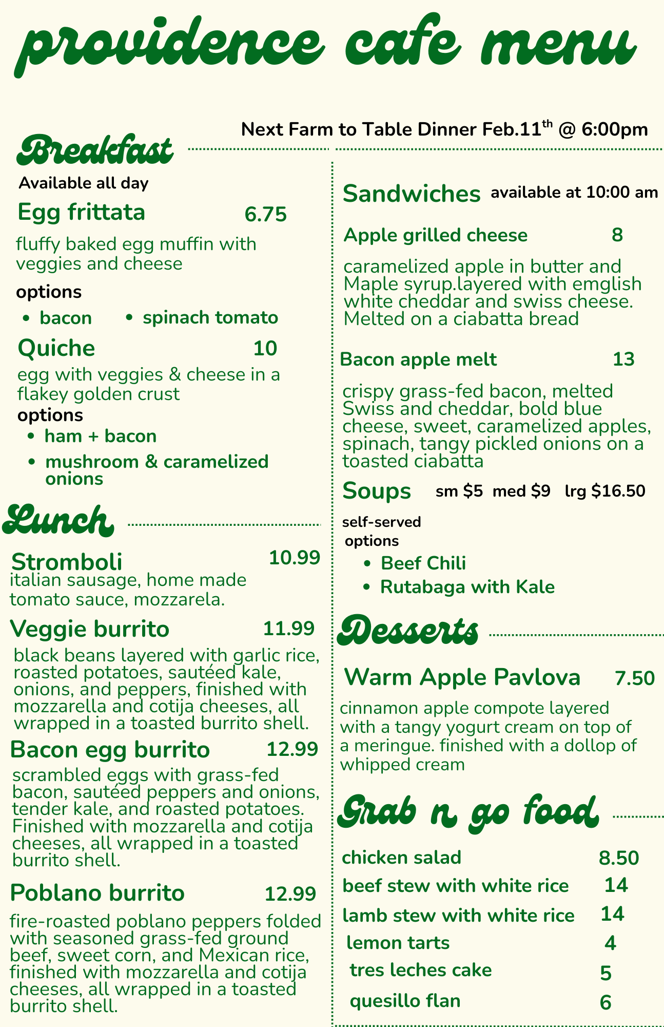 We try our best to update this menu daily; if the date above is not today, please give us a call for the most accurate menu!